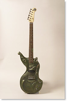 音楽が趣味で、自らギターを弾く佐山さんの『猫ギターがあったら面白いだろうな』というひらめきから生まれた作品で、 実際に演奏することもできます。音楽によって幸運を招くという全く新しい発想と、しなやかな猫の肢体を連想させる作品の完成度の高さが幅広い支持を集めました。
