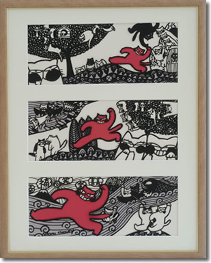 猫を描きながらも、実はそれは自分の分身だったり友人だったり見知らぬ誰かだったり…猫であって、人であって、モノでもある。見る時々によって色々な気持ちで受け取れる、そんな万華鏡のような作品を作ってゆけたらと思いつつ、紙を切る毎日です。