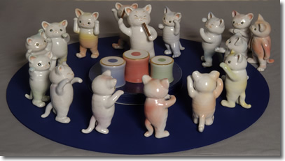今夜は夏まつりです。夕暮れになると 猫たちが瀬戸の街に 集まってきました。太鼓に合わせて踊る 招福音頭〜♪